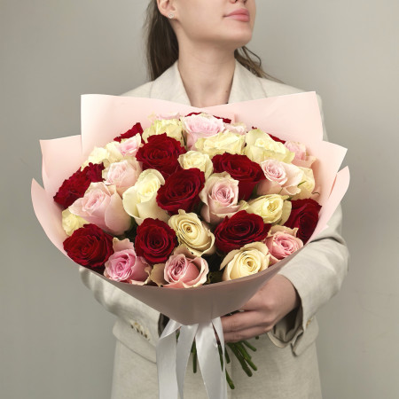 Роза 40 см - 35 шт., Лента атласная - 2 шт., Современная упаковка - 1 шт.Доставка 0₽ от 30-ти минут